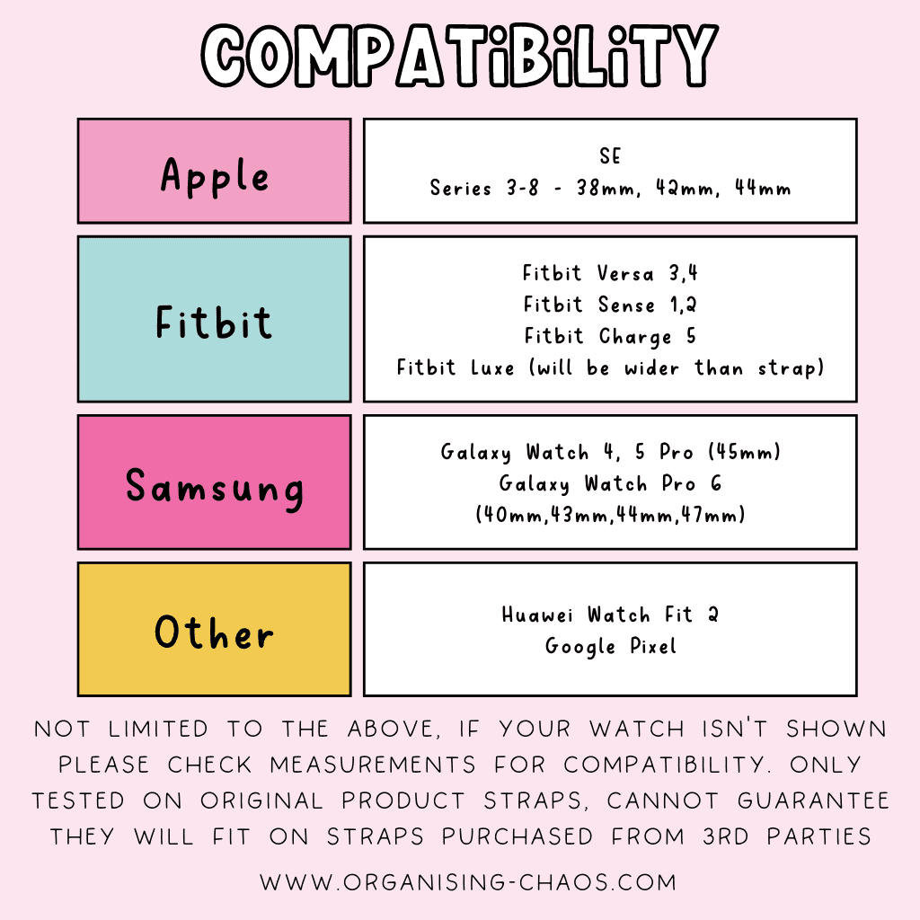 (Only tested on original product straps, cannot guarantee they will fit on straps purchased from 3rd parties)