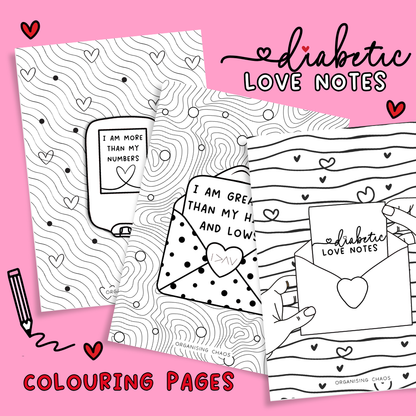 These Valentine’s colouring pages are my love notes to you, gentle reminders to be kind to yourself, embrace your diabetes and slow down for a moment.